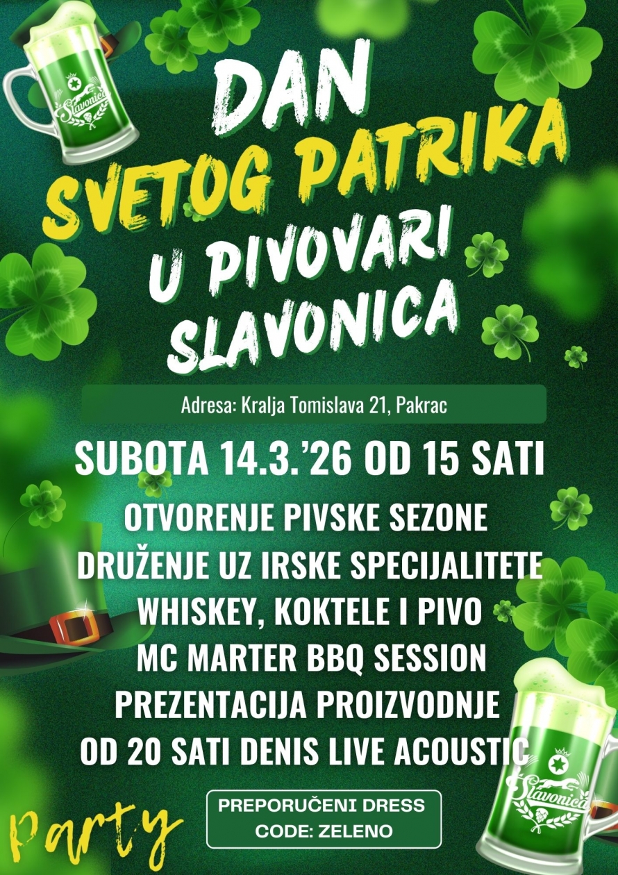 U organizaciji Pivovare Slavonica u subotu 14. ožujka od 15 sati, u okviru obilježavanja Dana grada Pakraca, u prostoru pivovare održava se prigodno obilježavanje Dana Svetog Patrika gdje će posjetitelji imati priliku uz raznovrsnu ponudu piva kušati određene irske specijalitete te uživati u večernjoj svirci koja počinje od 20 sati.