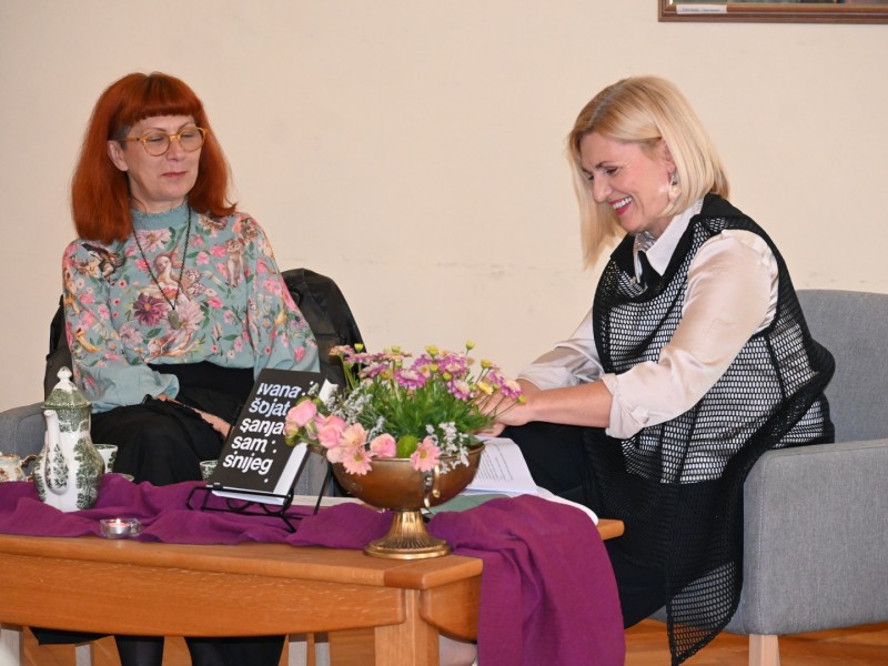 Središnja tema večeri bio je njezin novi roman „Sanjao sam snijeg“, u izdanju Naklade Ljevak, koji na dojmljiv način progovara o gubitku bliske osobe. „S ovim sam se romanom obračunala sa smrću“, povjerila je autorica, naglasivši kako današnje društvo često prešućuje i pokušava sakriti smrt, nastojeći je učiniti nevidljivom. Umjesto otvorena tugovanja, suvremeni svijet često nameće imperativ neprestane sreće. Upravo zato, smatra Šojat, nužno je ponovno progovoriti o tuzi koja prirodno prati odlaske onih koje smo voljeli.