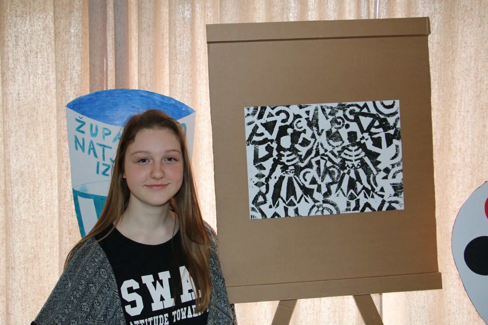 Tema županijskog natjecanja iz likovne kulture ove godine bila je „Mediteran u meni“. „Učenicima je zadana grafička tehnika, karton tiska. Nadahnuti mirisima, okusima, zvukovima, bojama te običajima i legendama Mediterana učenici su trebali kroz radove: osvijestiti važnost Mediterana kao kolijevke zapadno-europske kulture; usvojiti ključne pojmove zadane tehnike kao što su grafika, visoki tisak, karton tisak, računalni program, pozitivni i negativni prostor te kontrast toplo-hladno; primijeniti postupke otiskivanja karton tiska ili izraditi likovni rad pomoću računalnih programa za izradu računalne grafike; istražiti, vrednovati te prikazati ulogu pozitivnog i negativnog prostora plohe ili kontrast toplih i hladnih boja.“, doznali smo od nastavnice likovne kulture Andree Gašparec-Dražić i dodala kako je njezina učenica Tara Dašek prikazala dvoje plesača kako plešu morešku, ples s otoka Korčule, poigravajući se pozitivnim i negativnim prostorom plohe. „Moreška je viteška igra koja prikazuje bojni ples s mačevima kojeg karakterizira kratka dramska radnja. Razigrane plohe oko plesača na njezinoj grafici predstavljaju zvukove udaranja mačeva i veselje publike.“, rekla je Gašparec-Dražić.