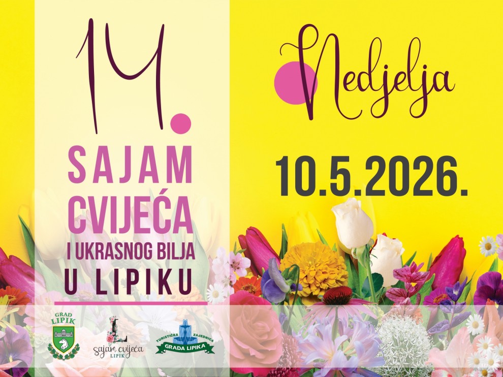 Druga nedjelja u svibnju u Lipiku tradicionalno je rezervirana za jednu od najljepših manifestacija u našem kraju. U nedjelju, 10. svibnja, održat će se 14. Sajam cvijeća i ukrasnog bilja, koji i ove godine donosi bogat program ispunjen glazbom, kreativnošću i tradicijom.