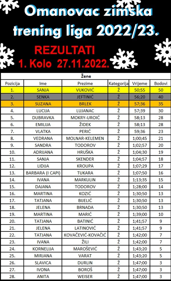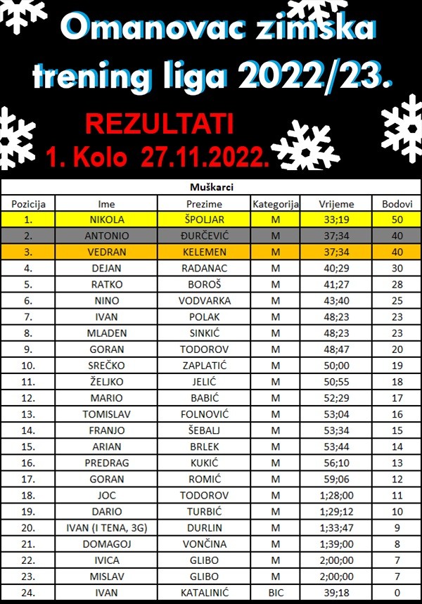 Protekle nedjelje, 27. studenog započela je 6. Omanovac zimska trening liga. Na 1. kolo odazvalo se rekordnih 52 natjecatelja, redom iz Kutine, Slavonskog Broda, Požege, Daruvara, Dugog Sela, Zaboka, Lipika i Pakraca. Zanimljivo je da je ovo prvi put da je sudjelovalo više žena nego muškaraca, koje su pokazale više hrabrosti nego muškarci i u velikom broju svladale ovaj ne baš lagani uspon.